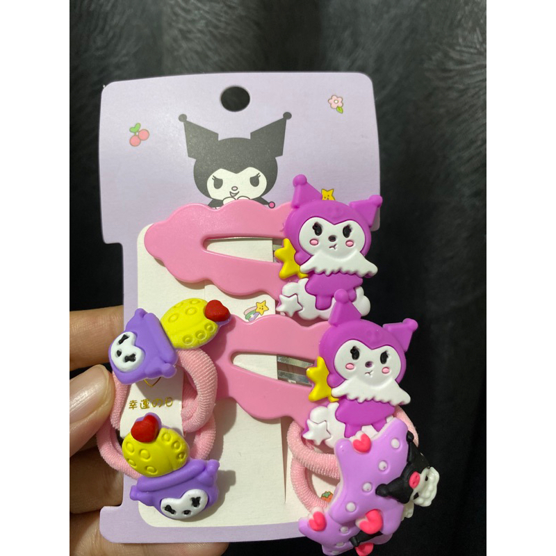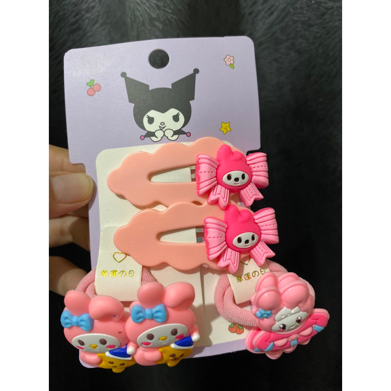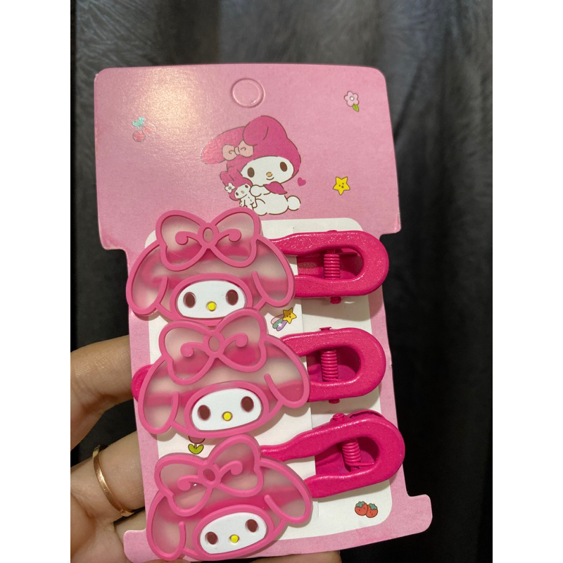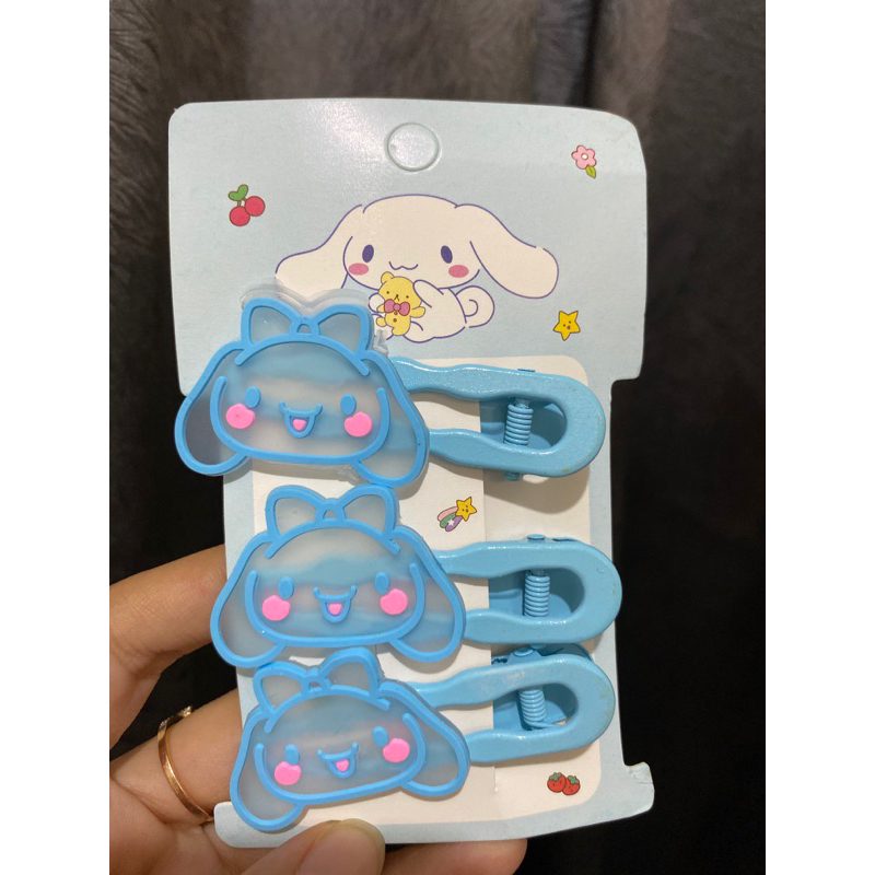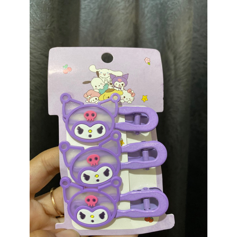Jepit sanrio set isi 3pcs jepet rambut karakter melody kuromi helokity cinnamoroll accecoris rambut pink biru Fanta ungu