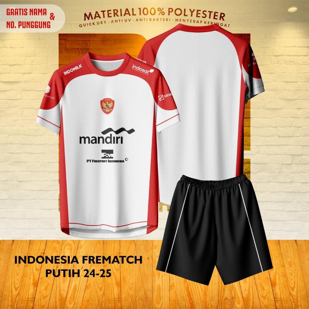 Jersey/Baju Bola TIMNAS FRE-MATCH PUTIH MERAH 24/25 SUPORTER Gratis Name Set & No Punggung