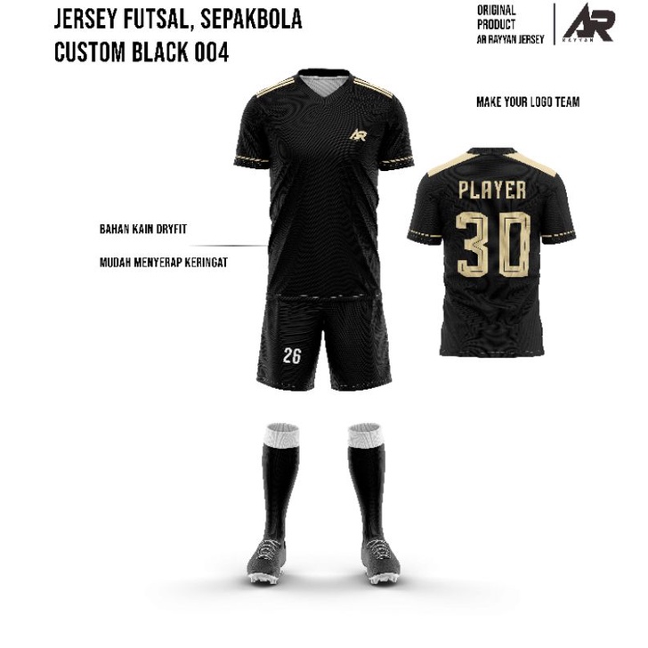 Jersey Futsal Custom Black Full Printing (Gratis desain nama dan logo) Baju Futsal Nama Sendiri
