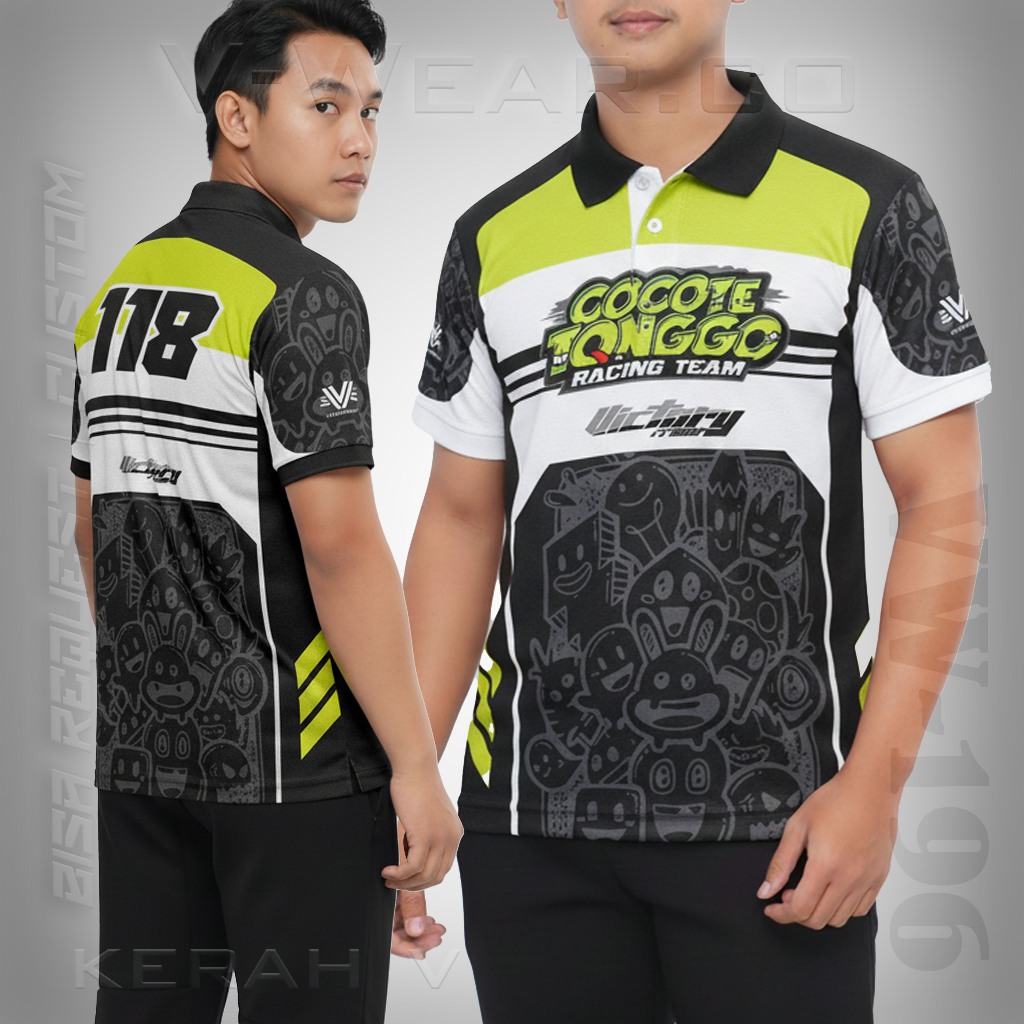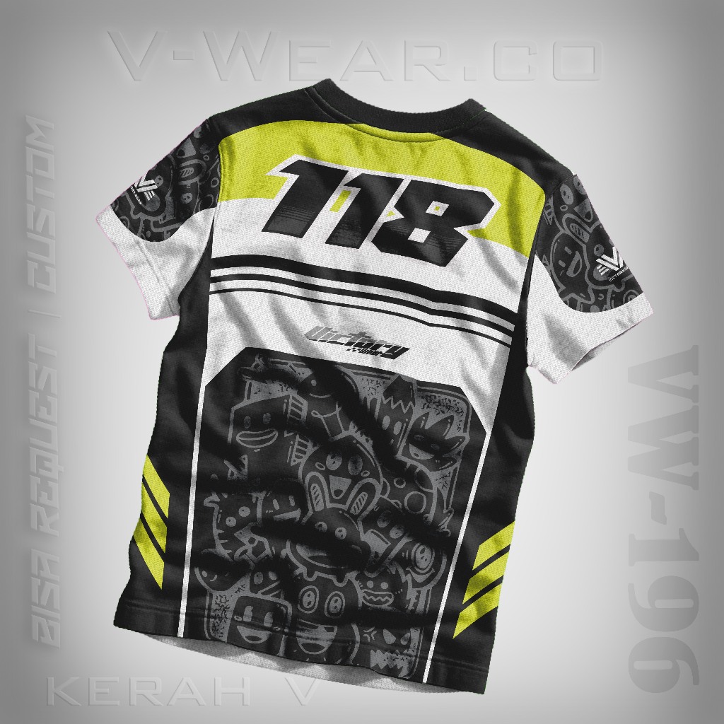 JERSEY KAOS RACING CUSTOM TULISAN KERAH POLO KANCING V-NECK, KAOS SATUAN, BAHAN FULLPRINT VW196
