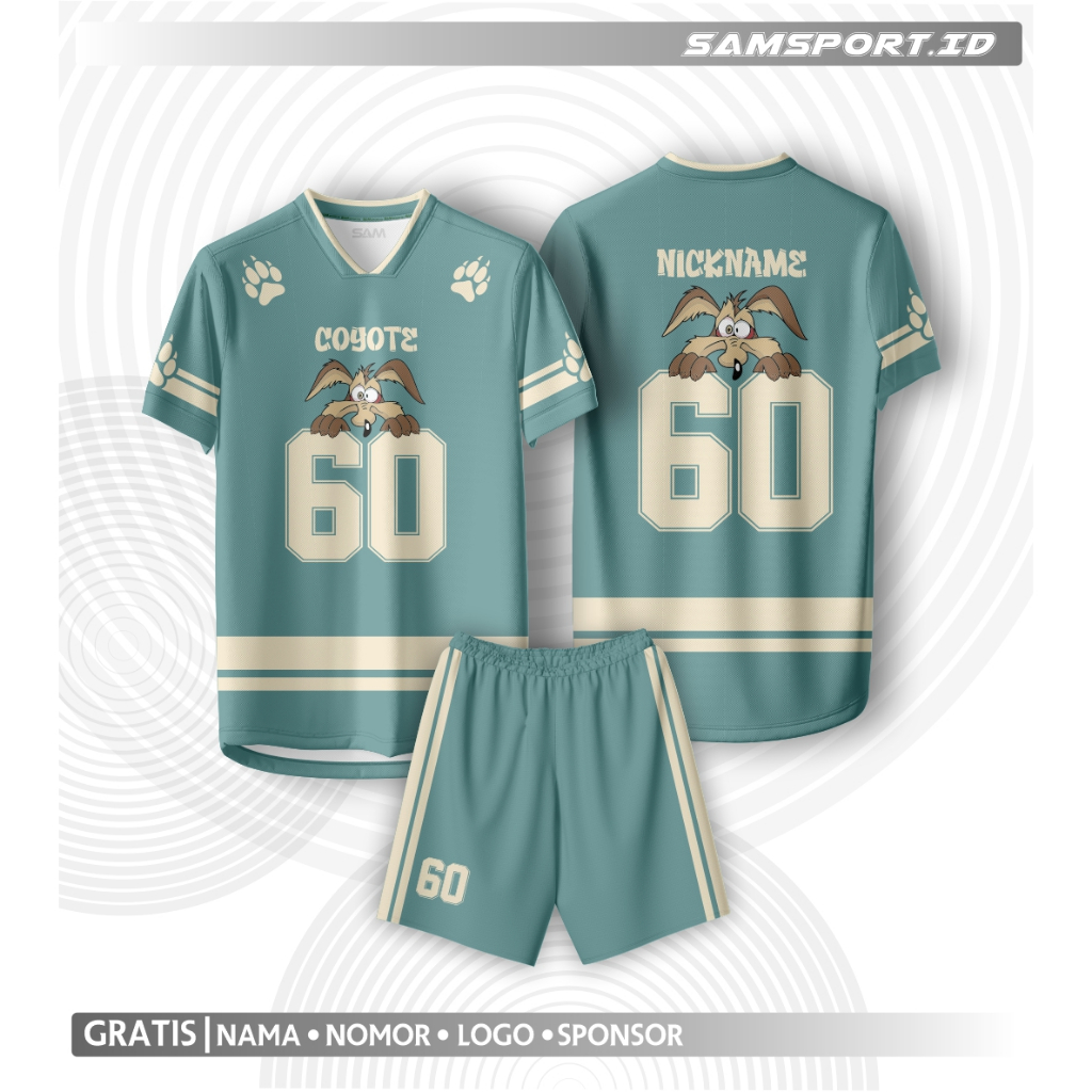 Jersey Streetwear NFL / Gratis Pasang Nomor / Jersey coyote loney toons/ Jersey Futsal / Rugby / Jersey Hockey / Retro / Full Printing / Setelan Atasan Dewasa Anak