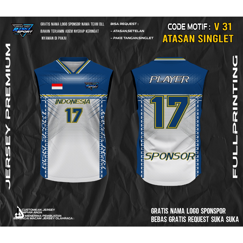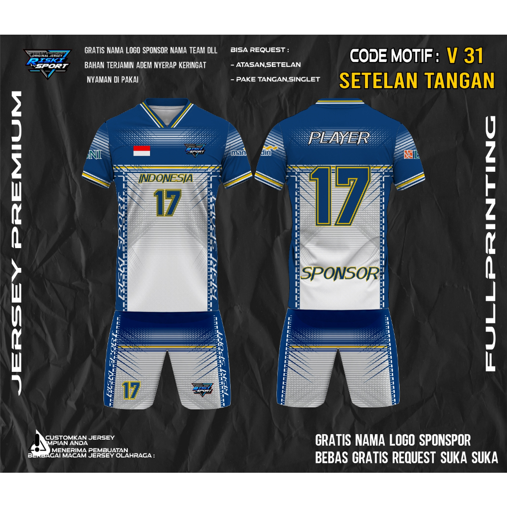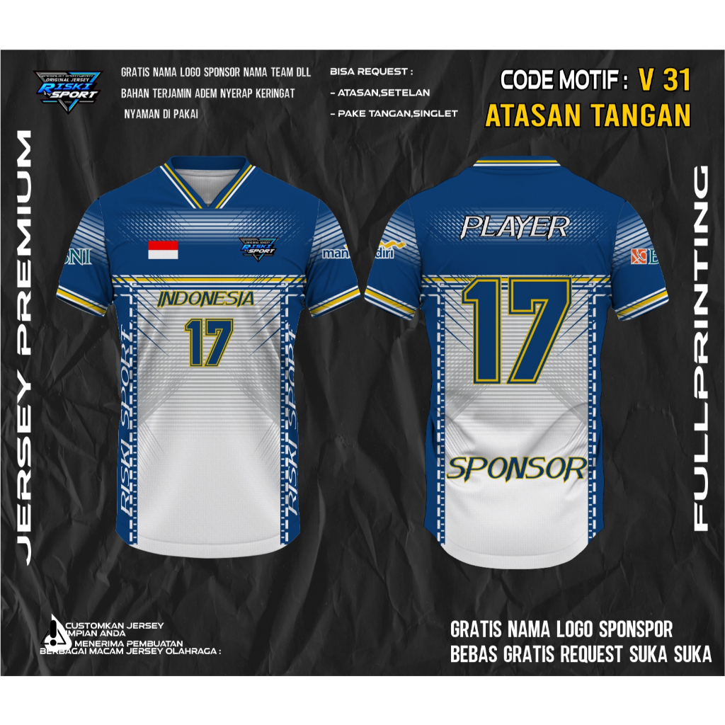 Jersey baju kaos olahraga voli volley voly bola voli sepakbola futsal gratis nama nomor logo sponsor V31