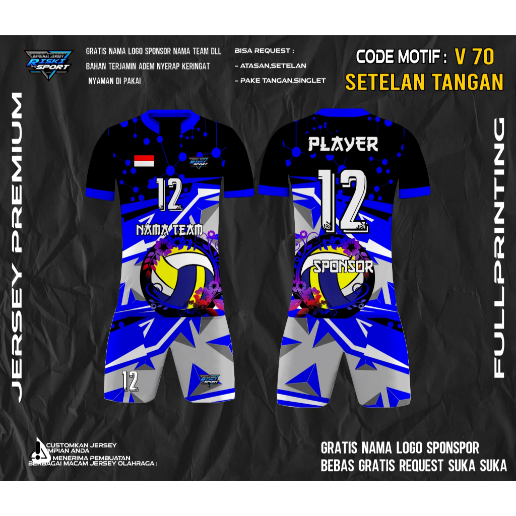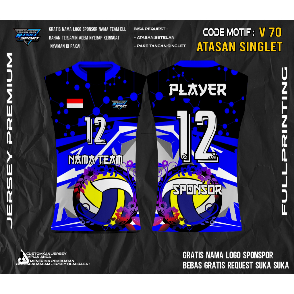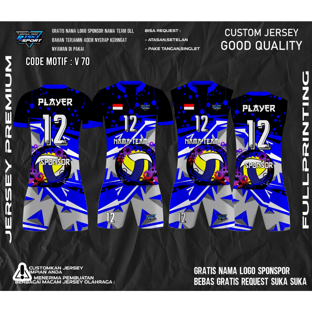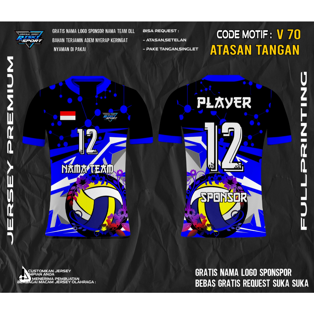 Jersey baju kaos olahraga voli volley voly bola voli sepakbola futsal gratis nama nomor logo sponsor v70