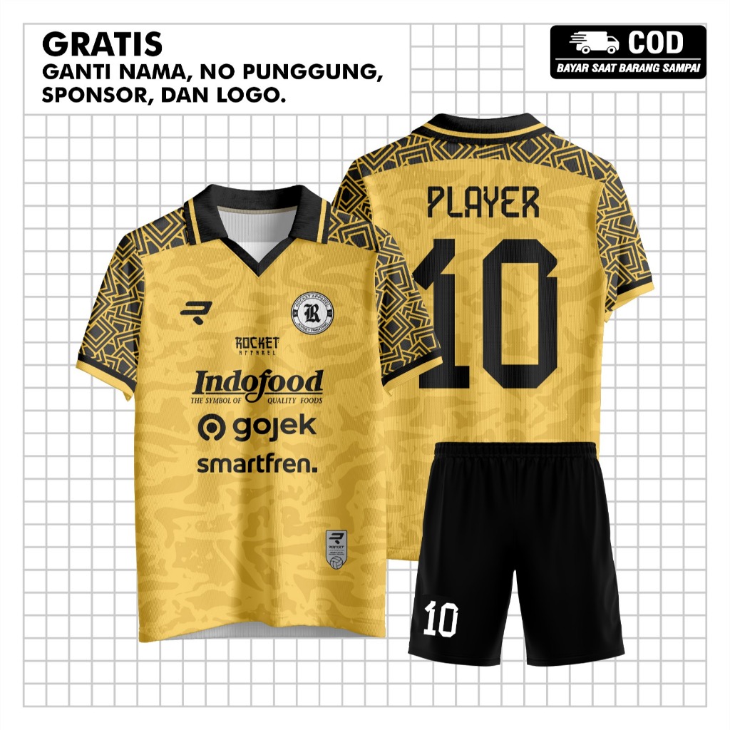 JERSEY FUTSAL CUSTOM SETELAN ANAK DEWASA FULLPRINTING NAMA NO LOGO KEKINIAN WARNA KUNING