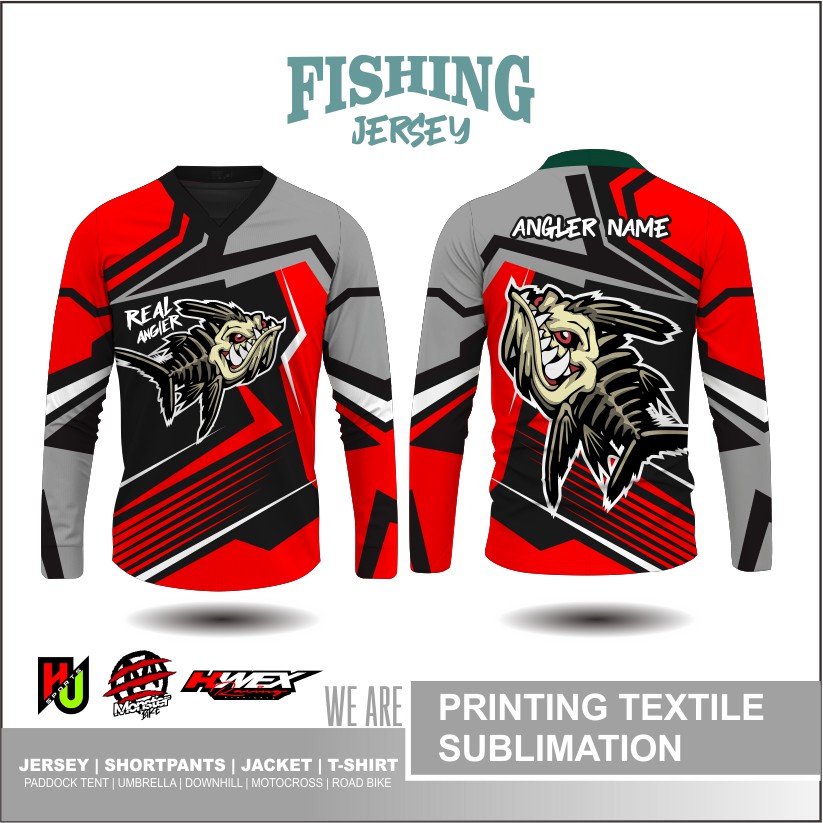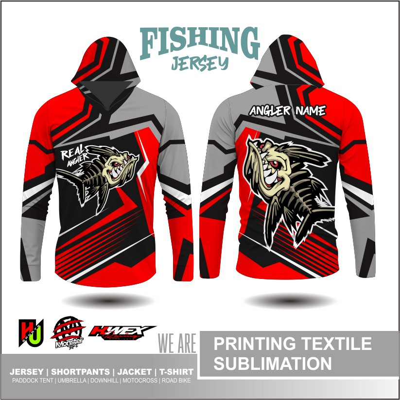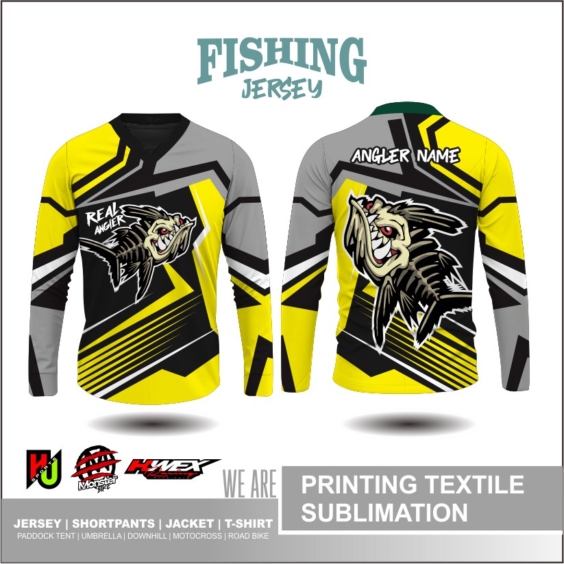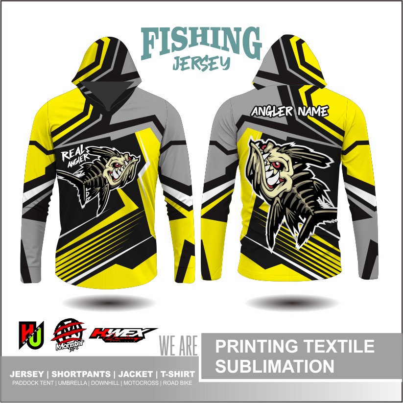 Jersey mancing baju pancing fishing custom printing premium kaos mancing mania kupluk Yellow Red