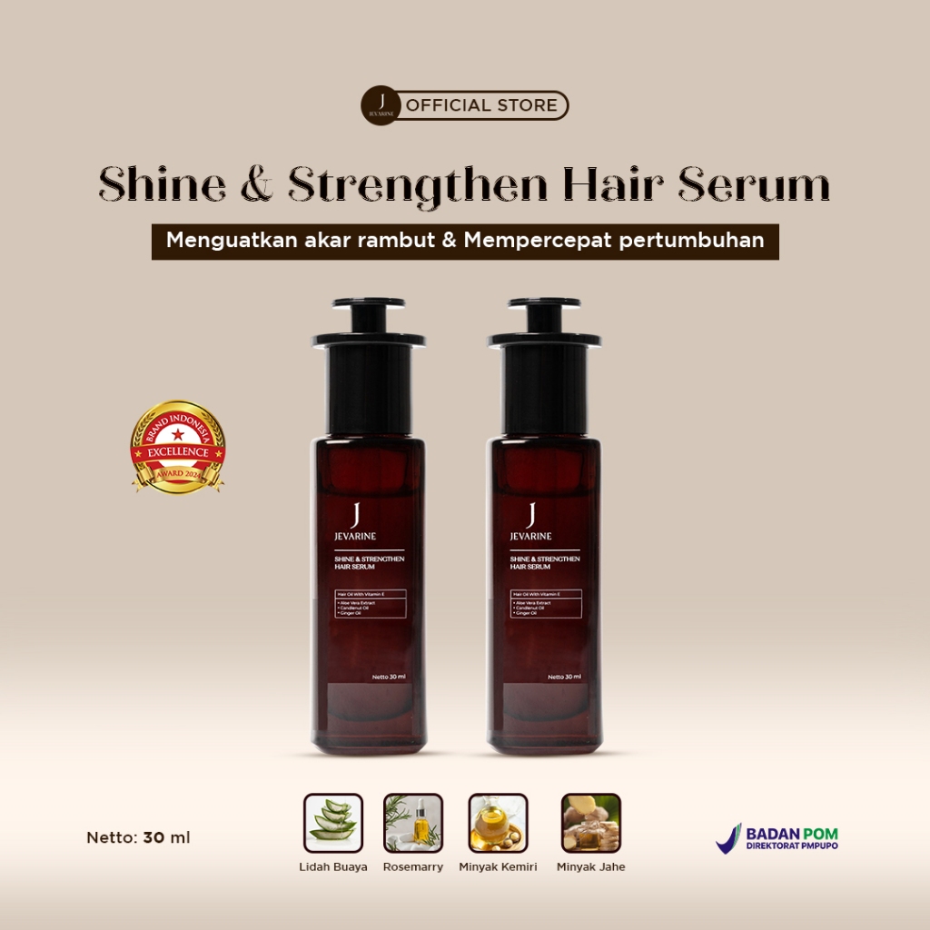 Jevarine Shine & Strengthen Hair Serum 2PCS - Mempercepat Pertumbuhan Rambut & Anti Rontok With Rosemarry , Aloevera , Ginger Oil & Candle Nut