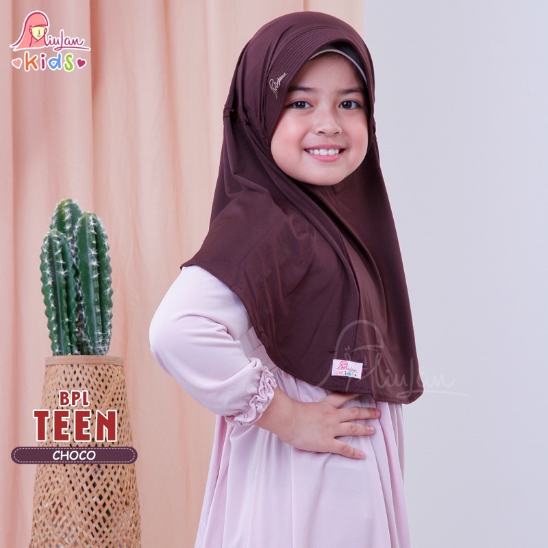 Jilbab Anak Sekolah SD warna Putih dan Cokelat Pramuka | Bergo Plain Laura Teen