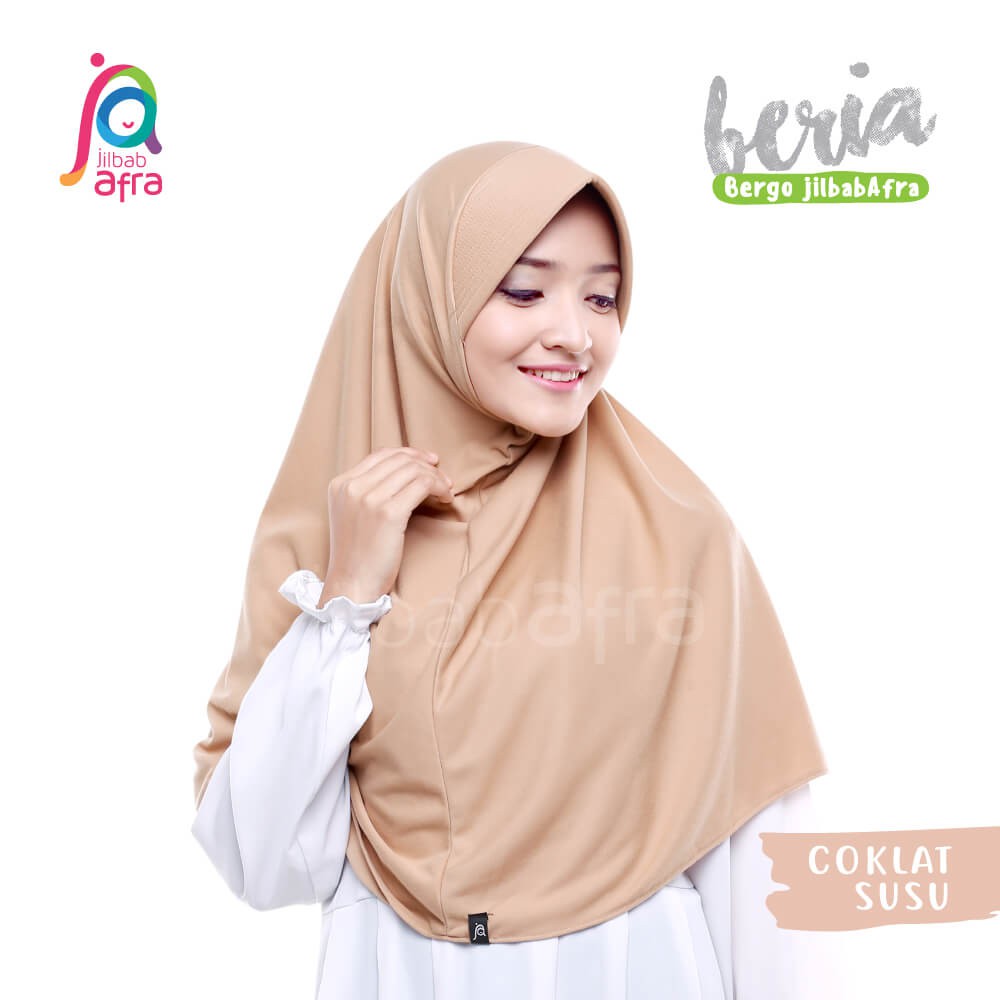 Jilbab Beria Coklat Susu - Bergo Jilbab Afra - Hijab Instan Bahan Kaos, Adem & Lembut