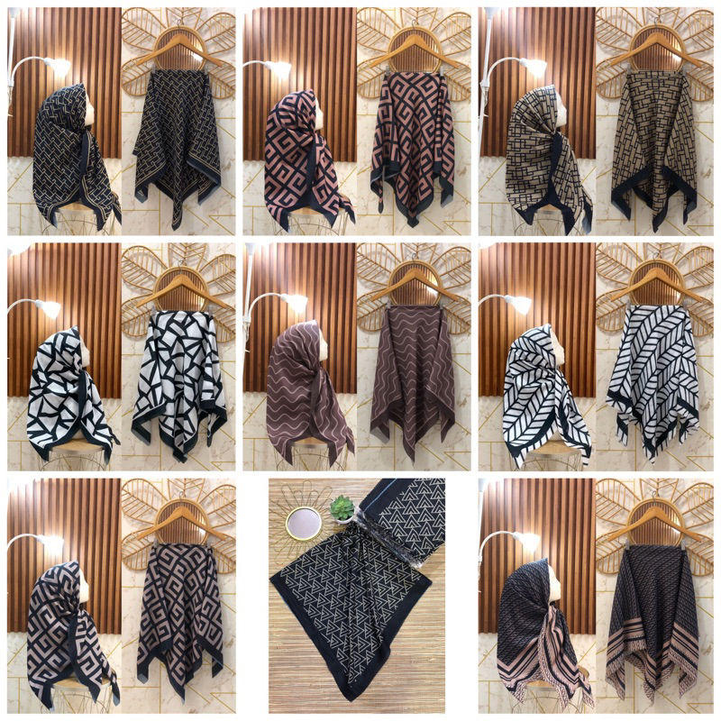 Jilbab Segi Empat Motif Premium