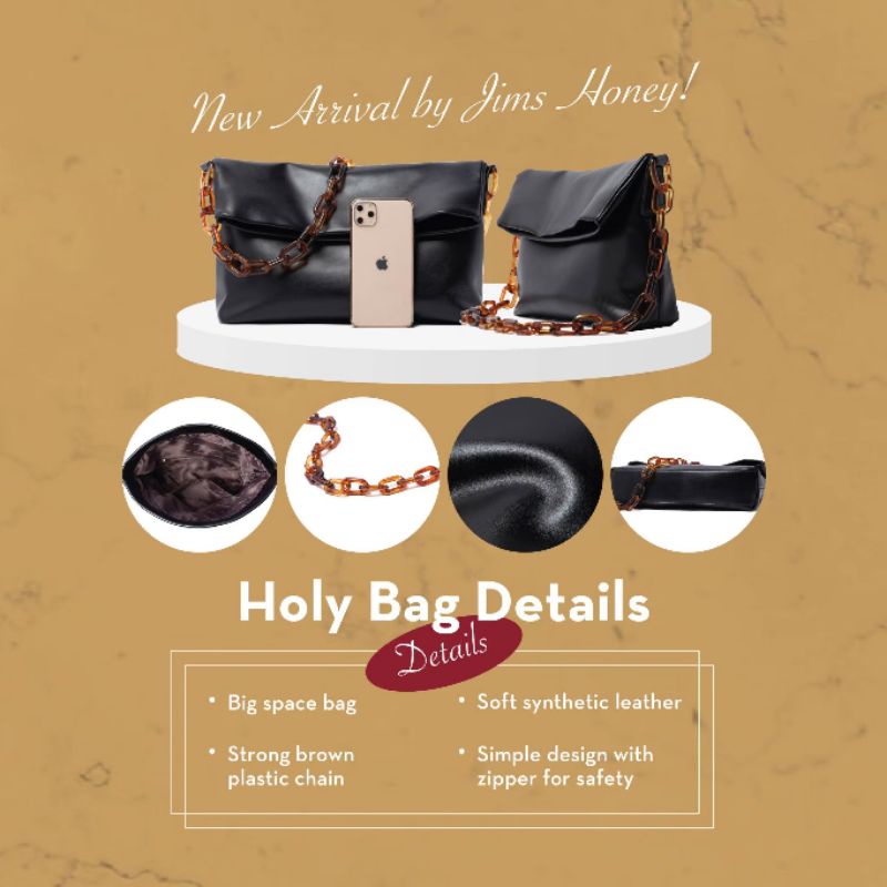 Jims Honey HOLY BAG Tas Kulit Messenger Wanita Rantai Plastik Casual, Formal & Fashionable 100% Original