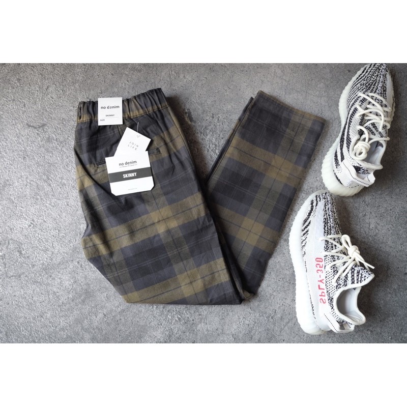 Celana Jogger Tartan Kotak Pinggang Karet Tali Brown Navy