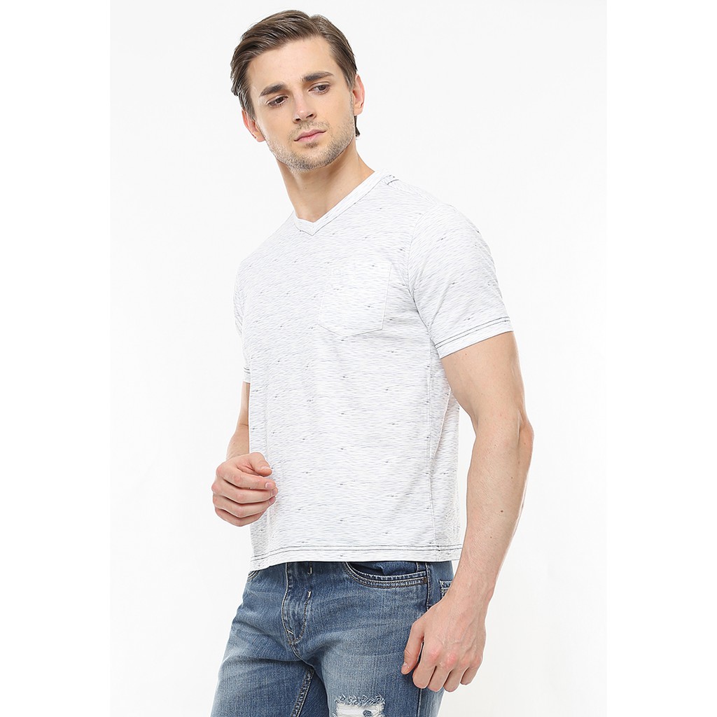 Johnwin - Kaos Casual - Kaos Pria - Kaos Motif - Kaos Abu - V Neck - Slim Fit - ATS.622.M234.01.C