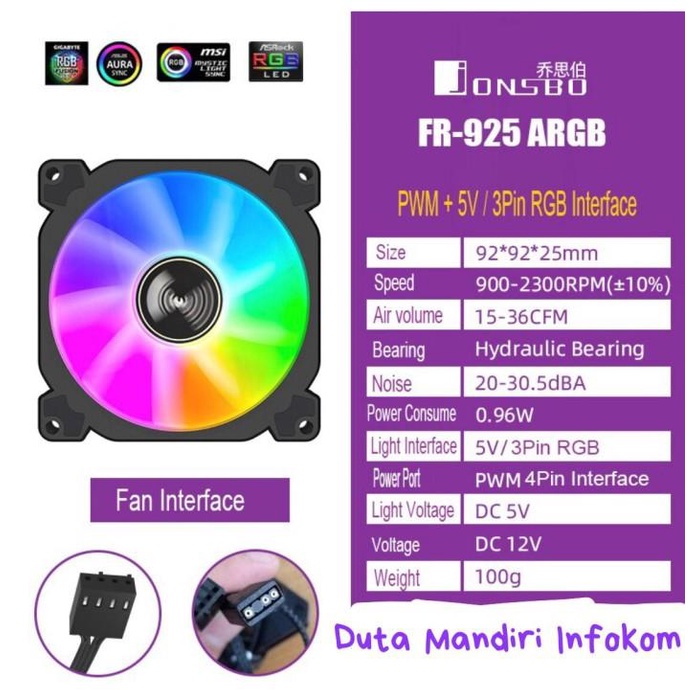 Jonsbo FR-925 ARGB Fan Case 9CM 5V 3Pin - 92mm ARGB Fan White Blade