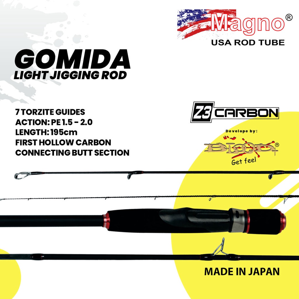 Joran Light Jig Magno Gomida Ukuran 190cm PE 1.5-2 Bahan Carbon Made in Japan Cocok Untuk Di Untuk Kapal Dermaga Danau Waduk Sungai dan Juga Kolam Kolam Besar