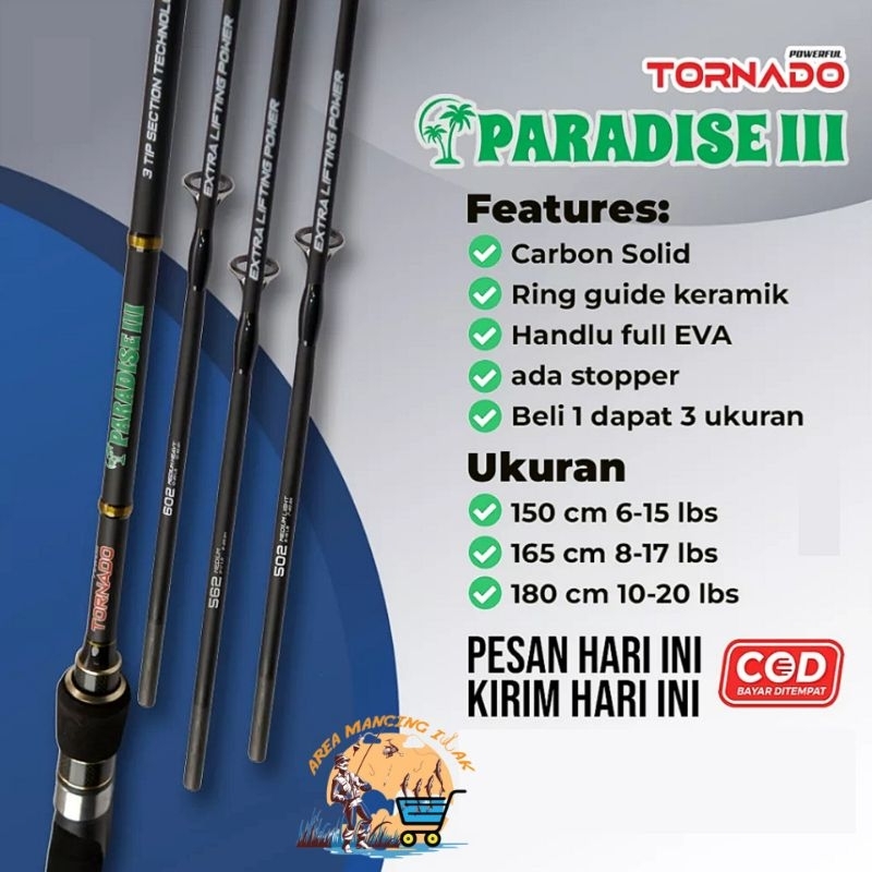 Joran Tornado PARADISE III 3 Top Section Solid Carbon FUJI (Beli 1 Dapat 3)