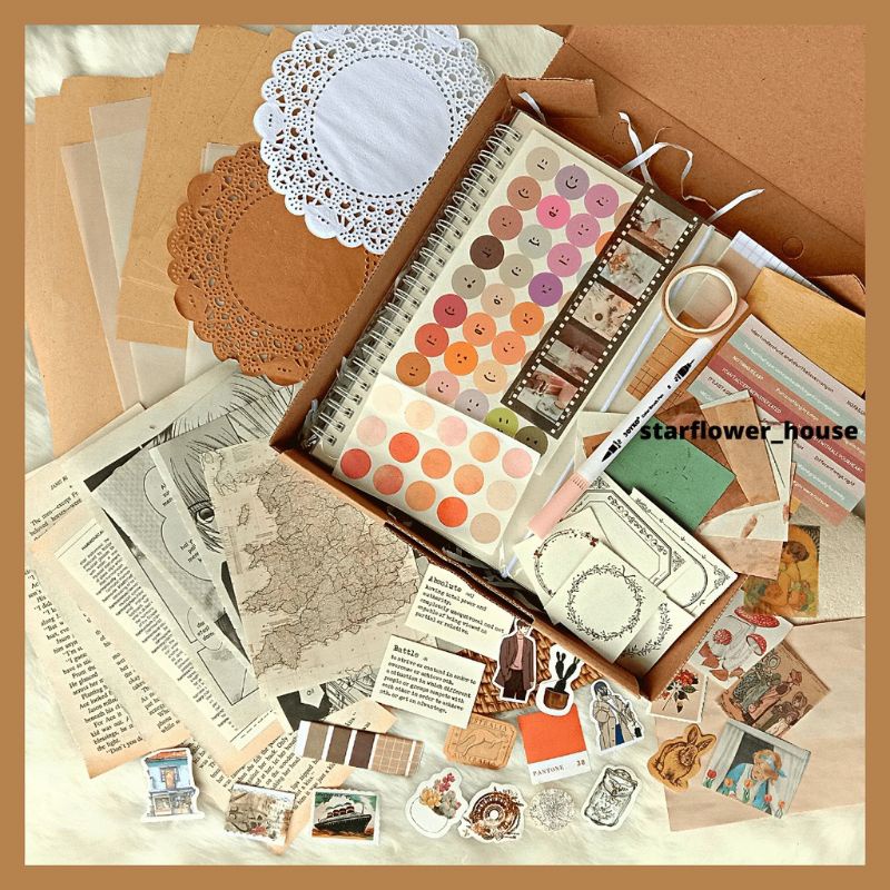 jurnal kit vintage scrapbook bujo aesthetic murah dekorasi deco stiker diy bullet journal planner kit aesthetic