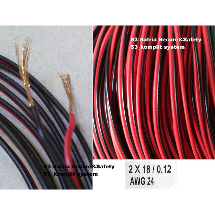 Jual Hitam Merah Kabel AWG24x2 ( meter) 2 jalur Kabel Listrik serabut Murah