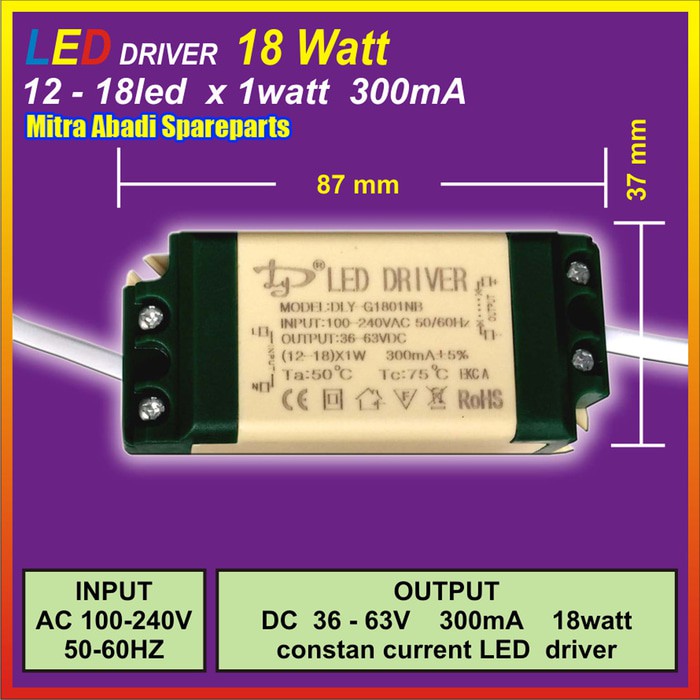 Jual LED Driver Casing Plastik 12 18 1W 1 Watt 300 mA DLY G1801NB Murah