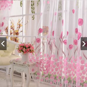 Jual gorden murah tirai tipis motif tulip pink 100x250cm Berkualitas