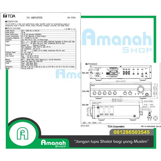 Jual ori amplifier toa audio power amplifier amplifier terbaik power amplifier murah TOAZA2120