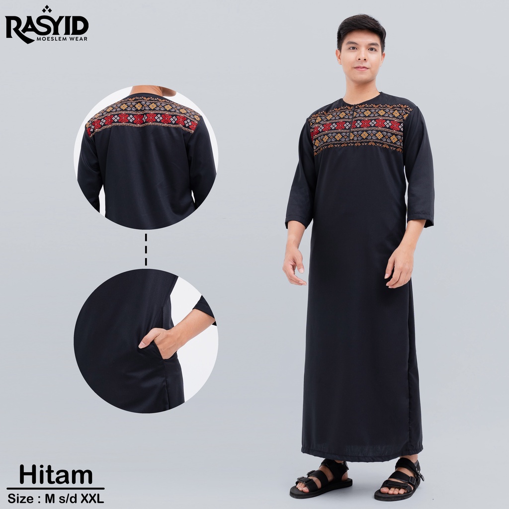 Jubah Gamis Pria Dewasa Motif Ethnic Hitam