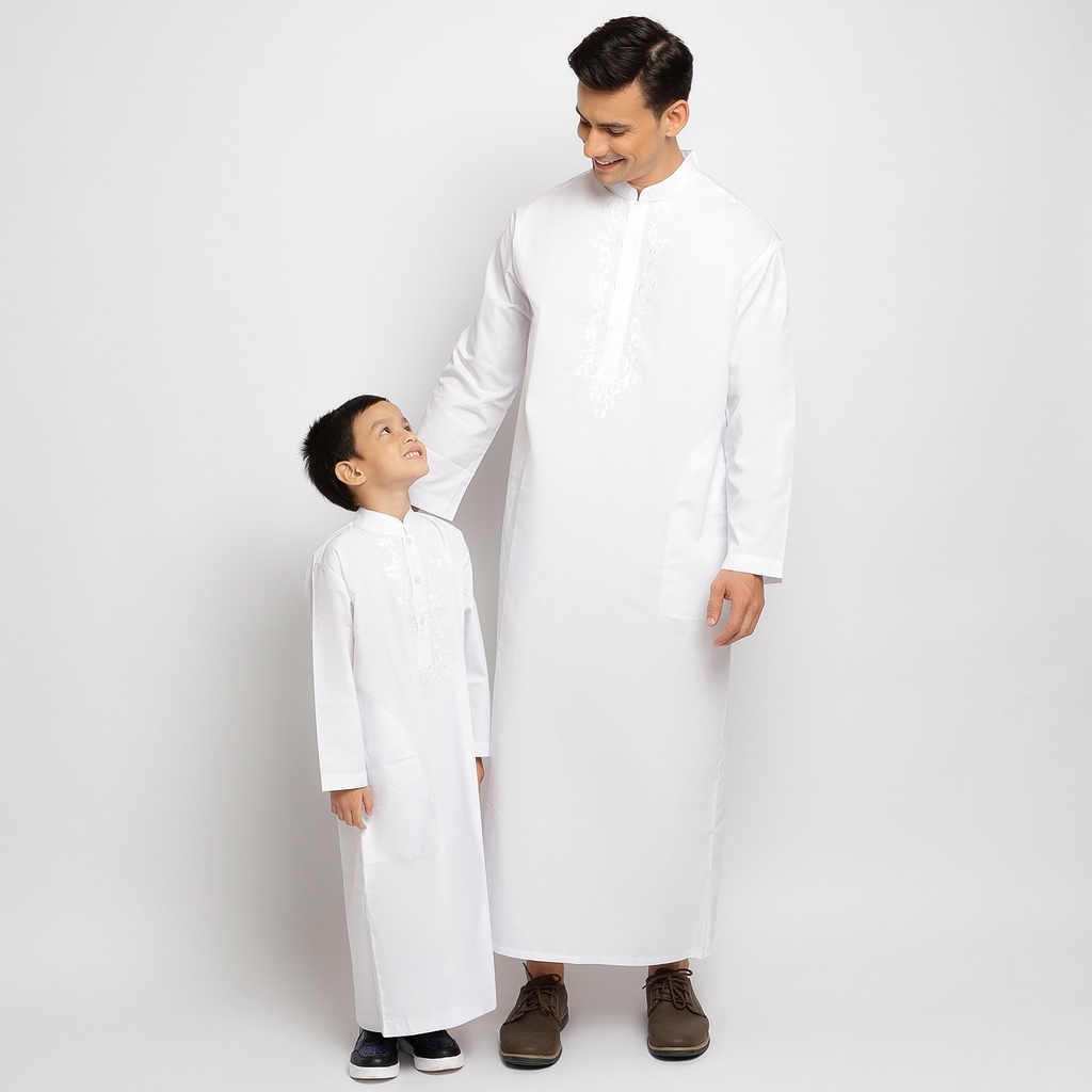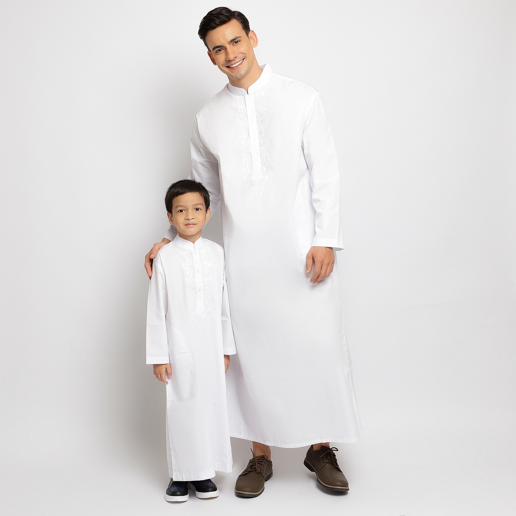 Jubah/Gamis couple Ayah & Anak Katun GP 06 White ORIGINAL by.Busana Arafah