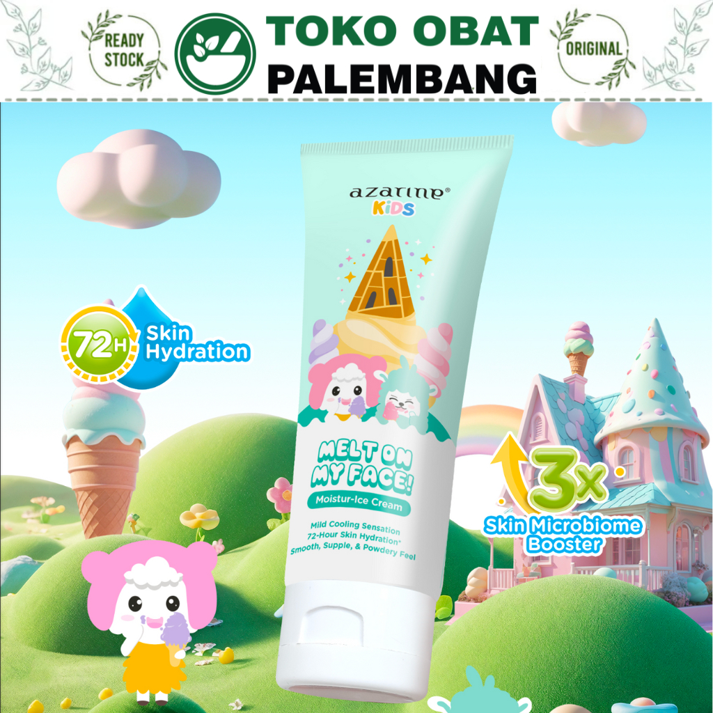 AZARINE KIDS MELT ON MY FACE MOISTUR-ICE CREAM 30ML MOISTURIZER WAJAH ANAK MILD COOLING SENSATION 72H KRIM MOISTURISER PAGI MALAM MUKA