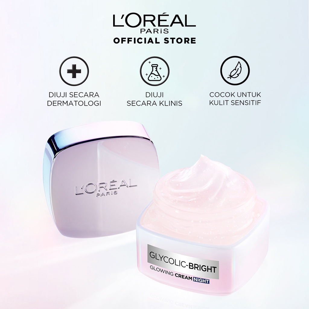 L'Oreal Paris Glycolic Bright Glowing Day Cream 50ml + Night Cream 50ml - Melembapkan dan Mencerahkan Kulit Kusam, Noda Hitam, Bekas Jerawat, Eksfoliasi Brightening day cream, cream flek hitam, cream pencerah