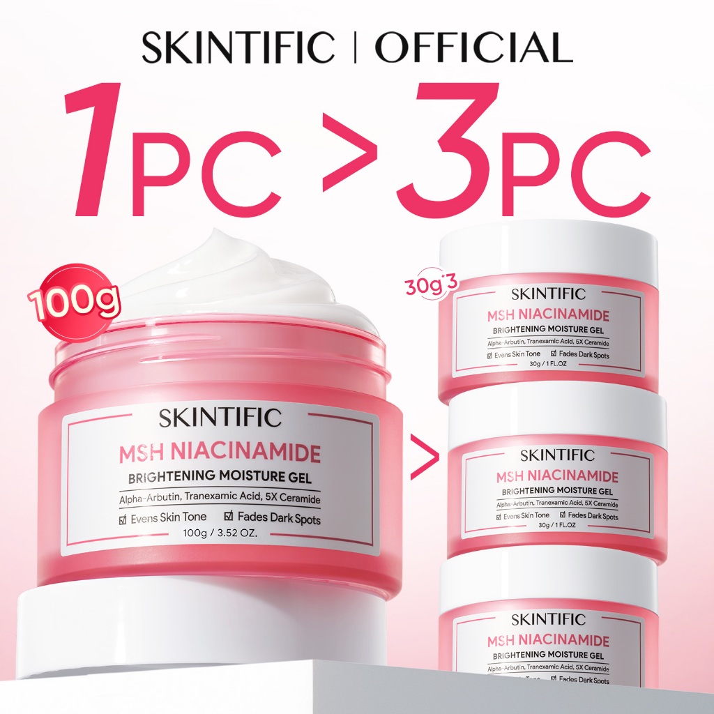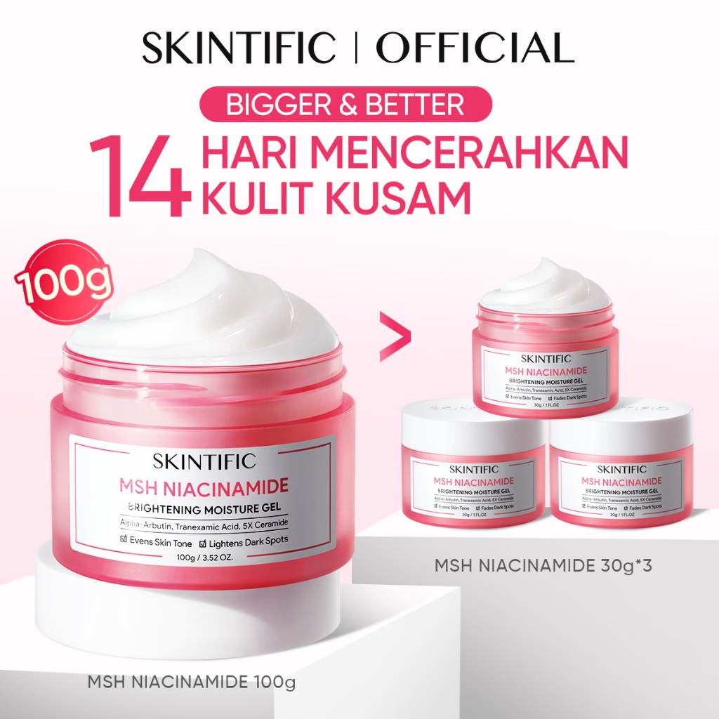SKINTIFIC - MSH Niacinamide Brightening Moisturizer Gel 100g | Cream Pemutih Wajah Calming Pelembab Wajah Pemutih Wajah Facial Moisturizer Day Cream Night Cream Skincare BPOM Niacinamide Skincare Facial with MSH Niacinamide mosturizer mousturizer official