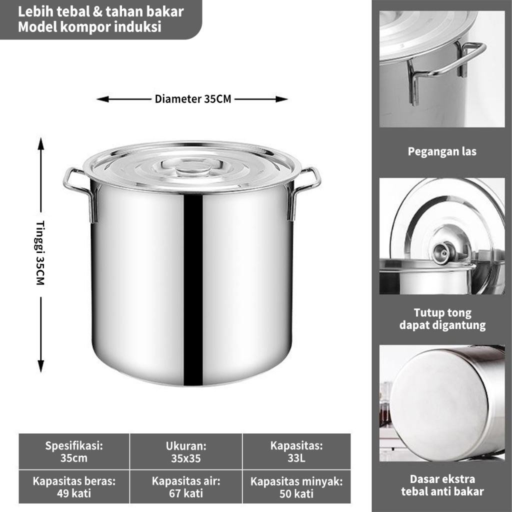 Panci Dandang Stainless Steel Stockpot Full Stainless SUS 304/12L 21L 34L 50L Panci Jumbo Tebal