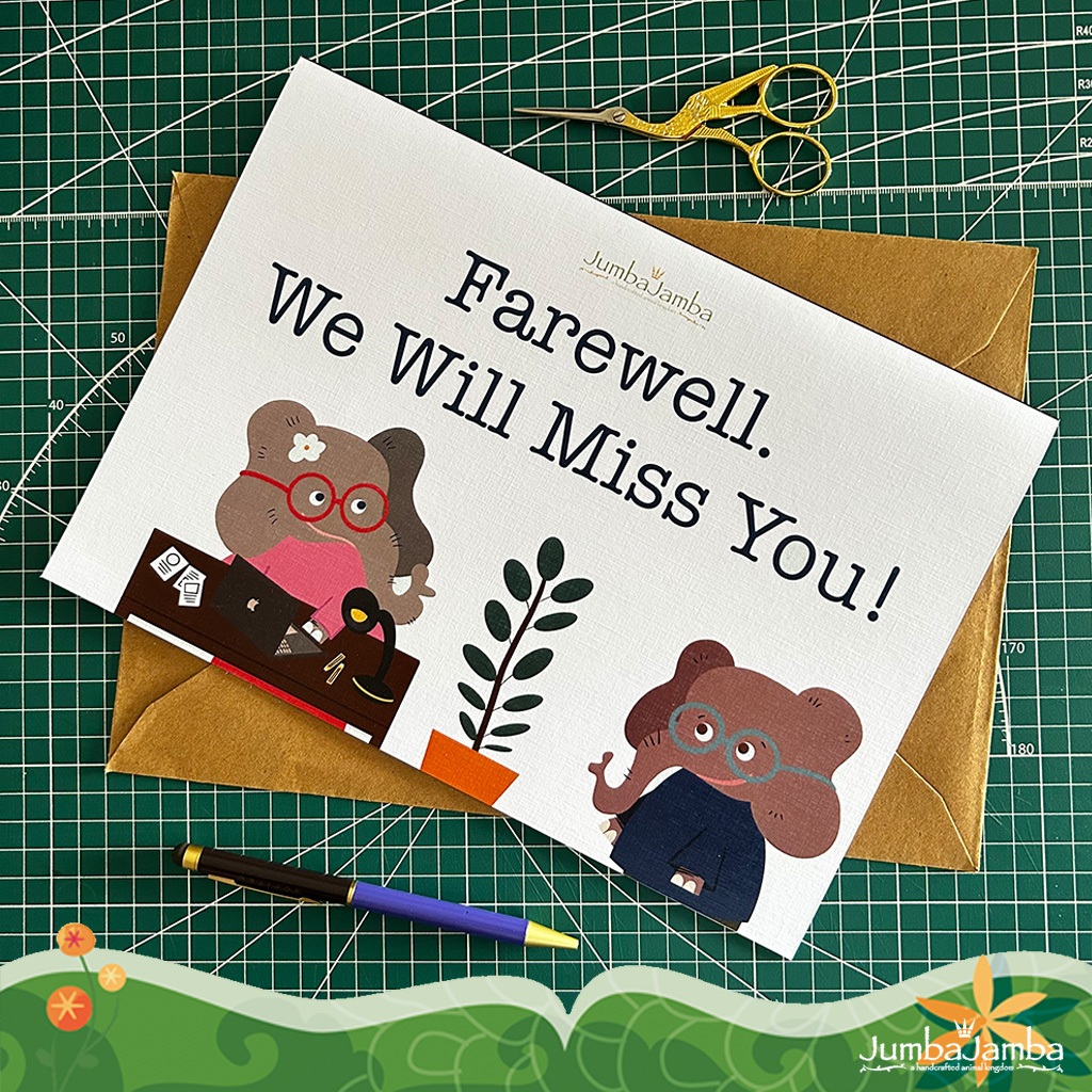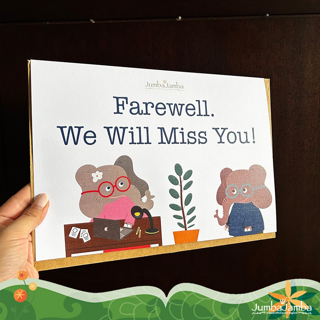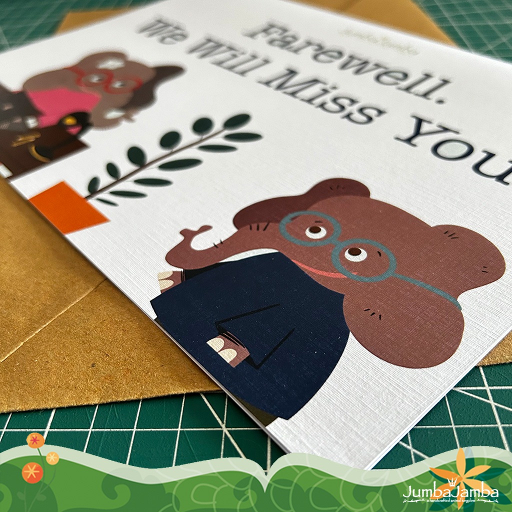Kartu Ucapan Perpisahan A4 - Jumba Jamba Elephants Office Mates Goodbye Farewell Jumbo Greeting Card