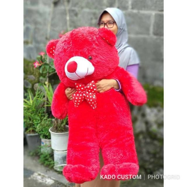 Jumbo 70cm boneka teddy bear hadiah kado custom ultah ulang tahun pacar cewek merah pink hijau cream