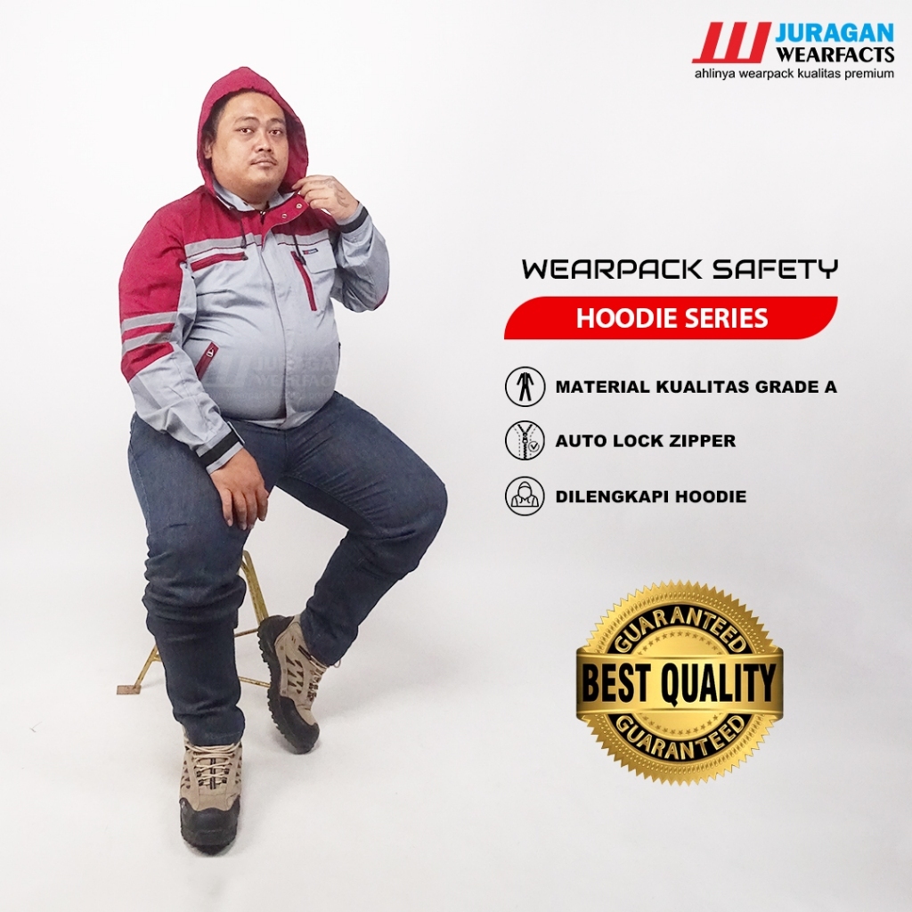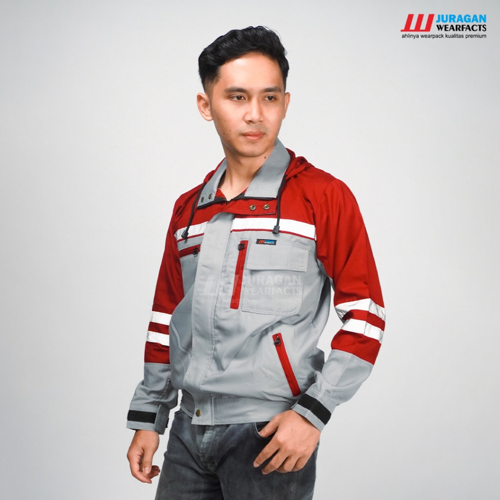 Juragan Wearfacts - Wearpack Kerja Segala Cuaca Warna Merah Maroon Kombinasi Abu