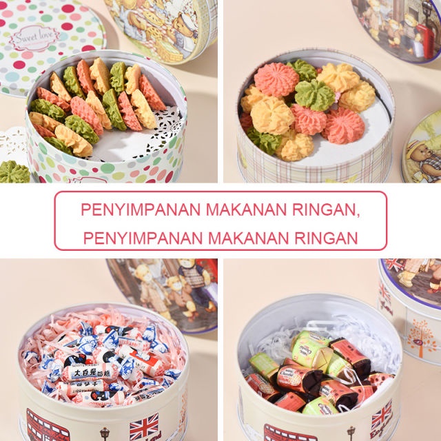Jure.dapur Kaleng Bulat|Kaleng Souvenir|Kaleng Hampers|Kaleng Permen|Kaleng Kosong Bentuk Segi Organizer Box kotak penyimpanan Kotak Besi Motif Lucu