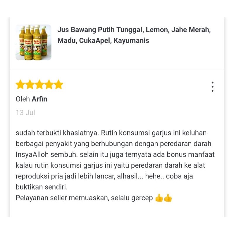 BPOM Jus Bawang Putih Tunggal Jahe Merah Lemon Madu Cuka Apel Kayu Manis - Hipertensi, Asam Urat, Kolesterol, Pelangsing, Detox, Ramuan Herbal, Garjus, Garlic Juice 600ml