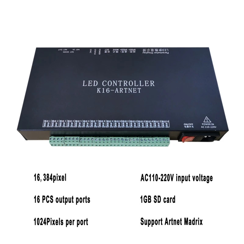 K16 Artnet 16 Ports Addressable Programmable Pixel LED Controller for Matrix WS2812 WS2811