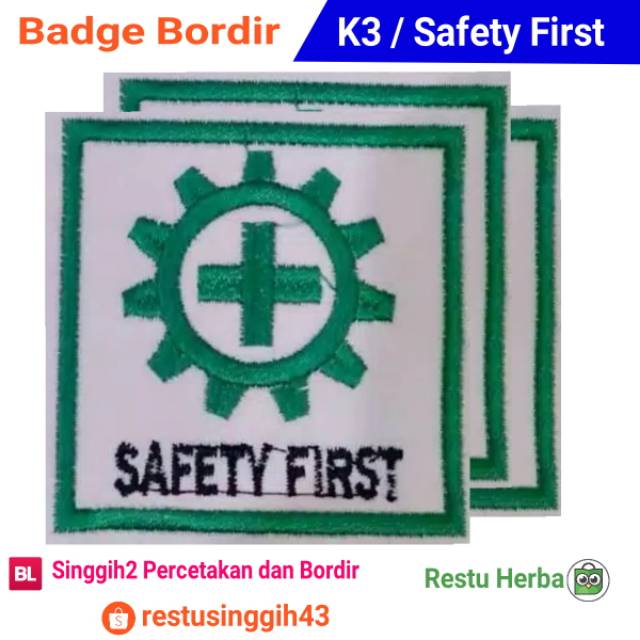 K3 Badge Bordir Logo Safety First Emblem Bordir Komputer Bet Bordiran