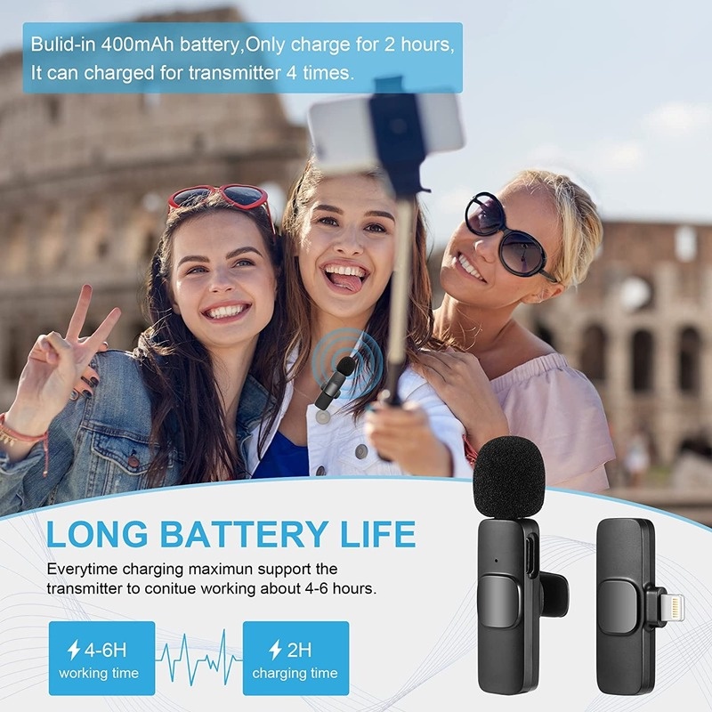 K8 K9 Microphone Wireless Mikropon Bluetooth Clip On HP Vlog Microfon Youtuber Recording Portable Mic
