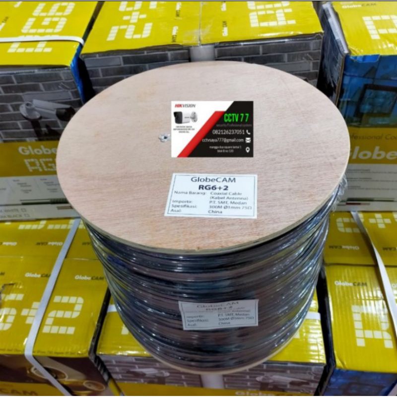 KABEL CCTV RG6 + POWER 300M GLOBE CAM WARNA HITAM