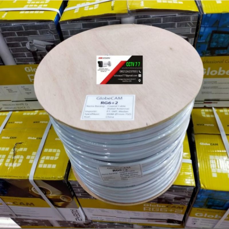 KABEL CCTV RG6 + POWER 300M GLOBE CAM WARNA PUTIH