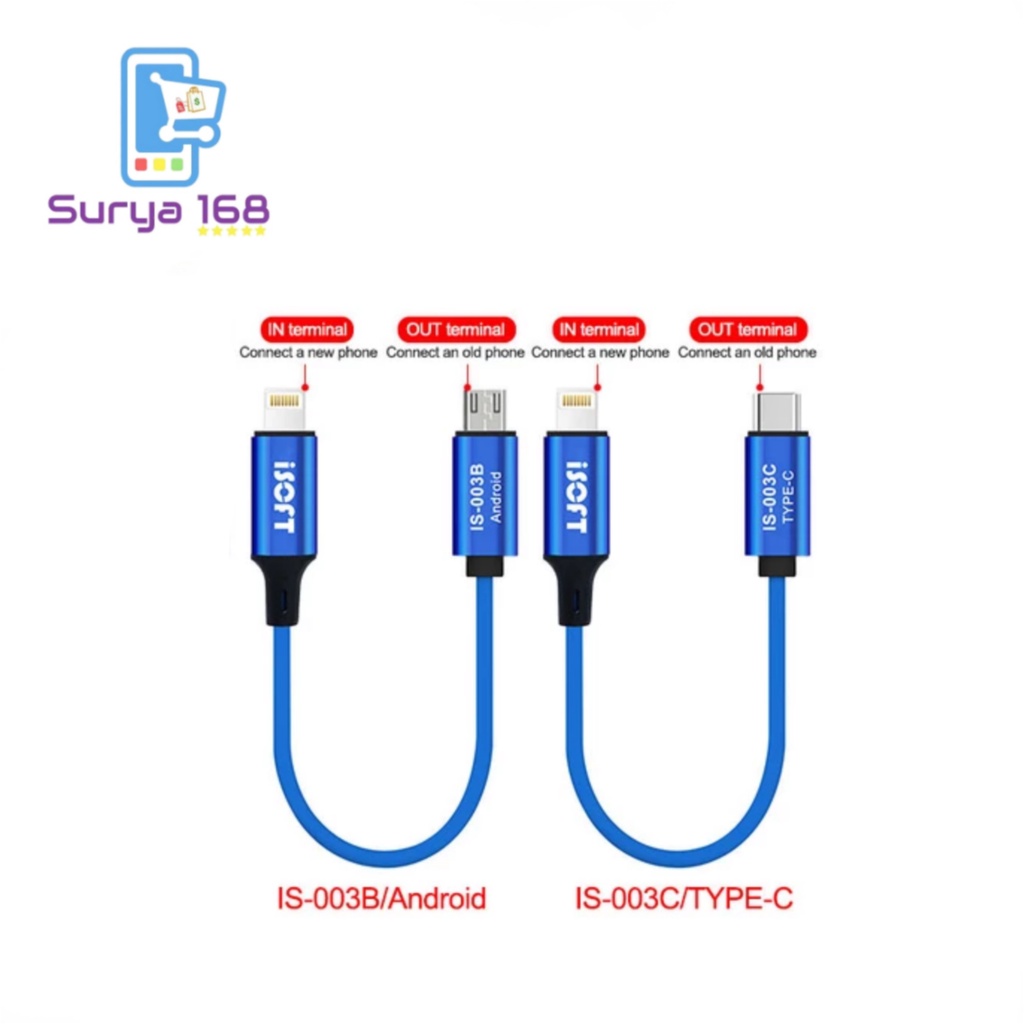 KABEL DATA TRANSMISSION CABLE TRANSFER DATA / PINDAH DATA IP / MICRO / TYPE C LIGHTNING ISOFT