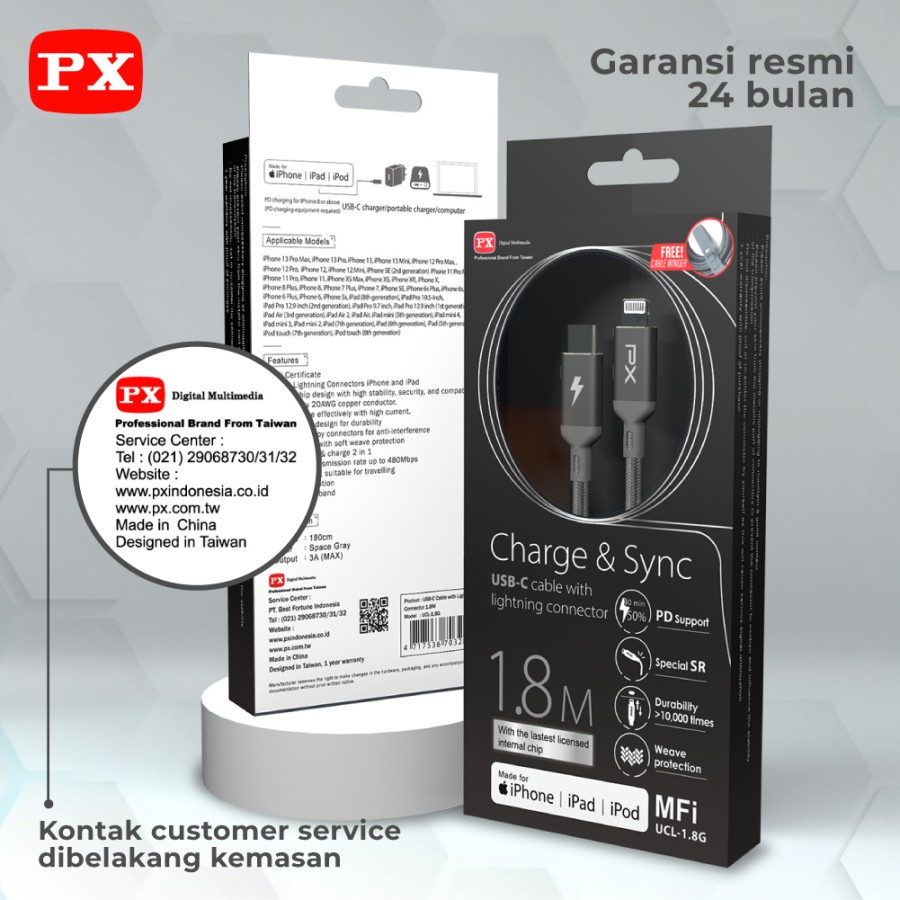 KABEL DATA TYPE-C TO LIGHTNING PX CABLE PD 30W FAST CHARGING MFI