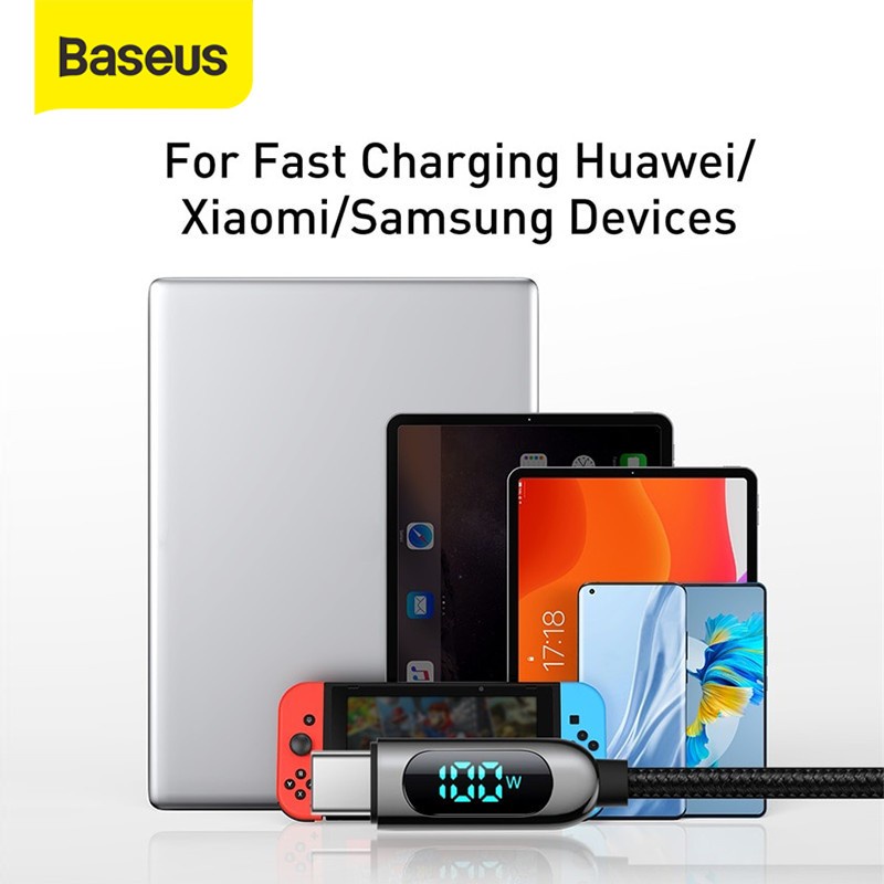 KABEL DATA TYPE C TO TYPE C 100W PD FAST CHARGING BASEUS LED DISPLAY 2M CABLE CHARGER TIPE C TO TIPE C PENGISIAN CEPAT PENUH KABEL USB-C TO USB-C 100WATT CARGER KABEL CASAN TYPE C FOR NOTEBOOK HANDPHONE SAMSUNG OPPO VIVO REALME REDMI INFINIX XIAOMI