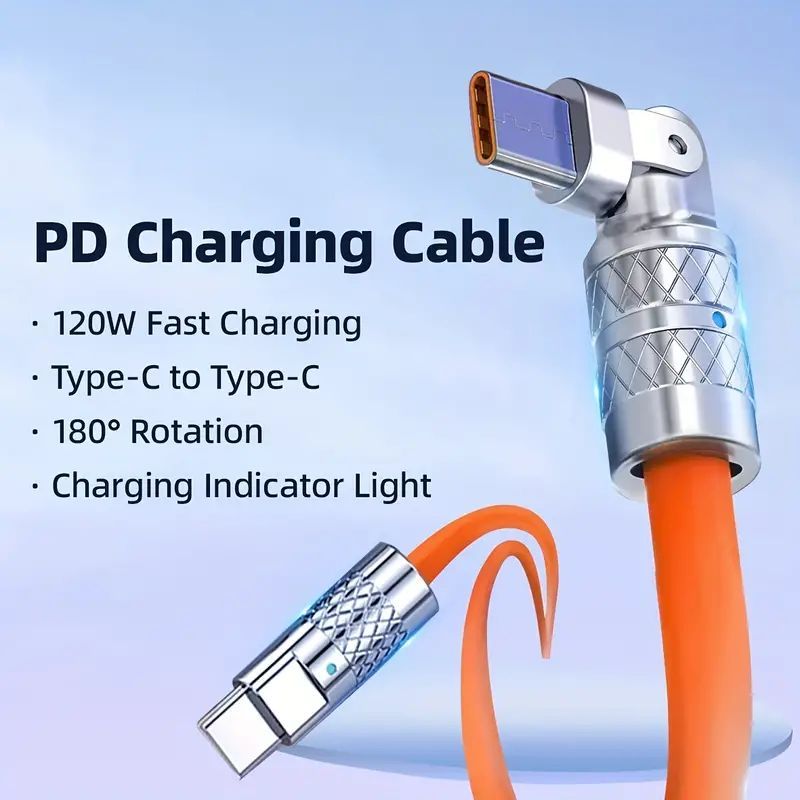 KABEL DATA TYPE C TO TYPE C PD 120W 6A ROTATE BISA DI PUTAR BENGKOK GAMING Kabel Data Charger Fast Charging POWER DELIVERY Type-C to C NCC Kabel Data Metal Kuat Charger Pendek Powerbank Micro USB Type-C Replaceable Fast Charging