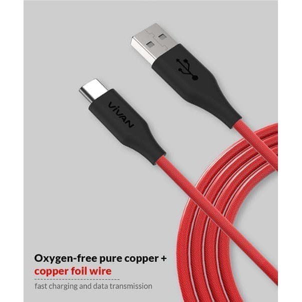 KABEL DATA Type-C VIVAN BC100 Fast Carging 3A 10CM RedBlack ORIGINAL