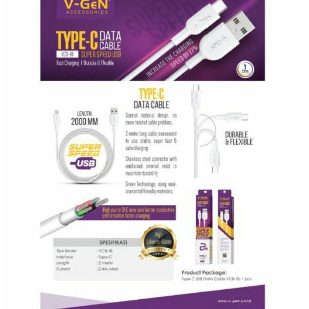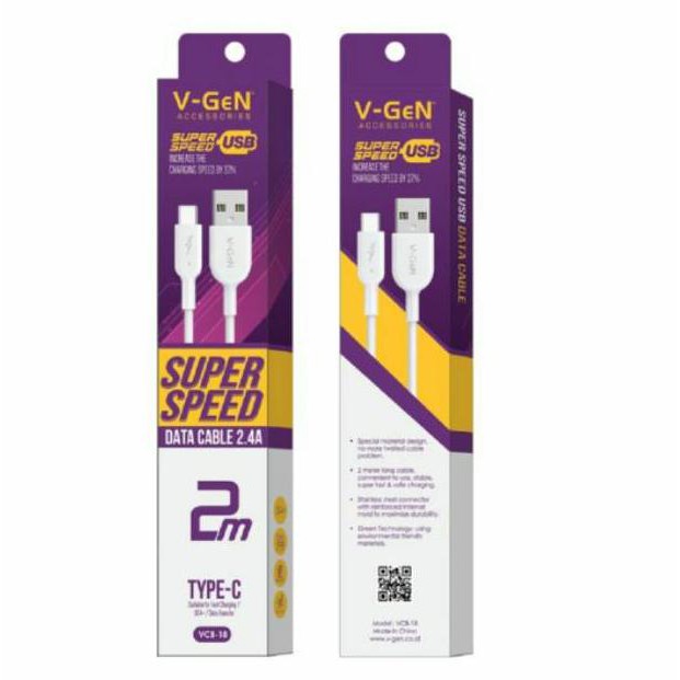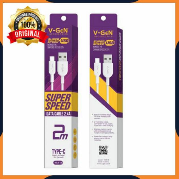 KABEL DATA USB TYPE-C TYPE C TIPE C V-GEN VGEN VIGEN VCB-18 FAST CHARGING ORIGINAL 2M 2 METER (KODE