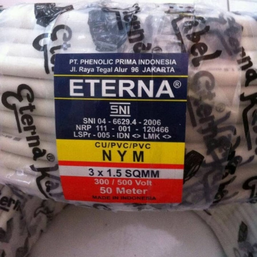 KABEL LISTRIK NYM ETERNA 3X1.5MM 3X1,5 MM TUNGGAL KAWAT HARGA/1METER