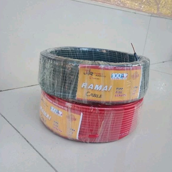PAKET 1 PASANG 2ROLL MERAH HITAM KABEL LISTRIK TEMBAGA KAWAT TUNGGAL ISI 1 KABEL ISTLASI LISTRIK NYA 1X2,5MM2 50YARD MERK RAMAI