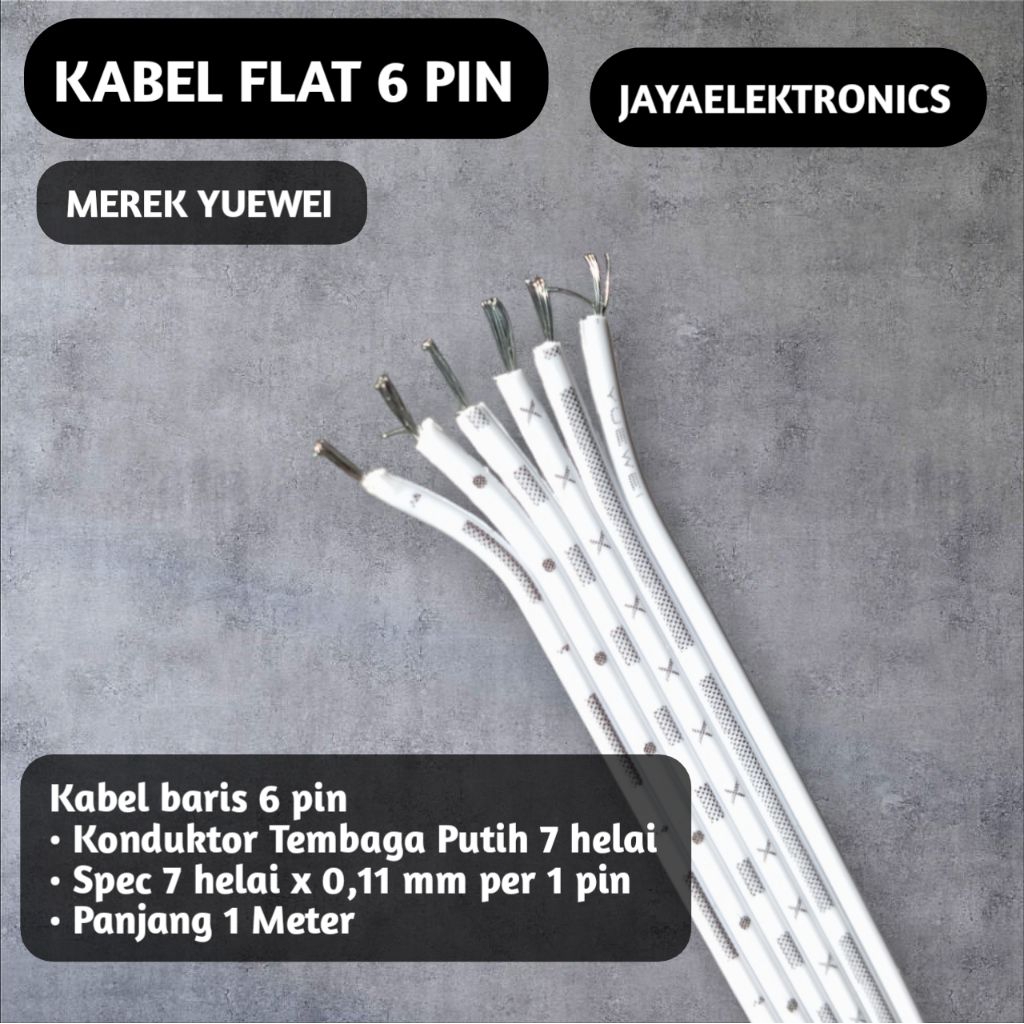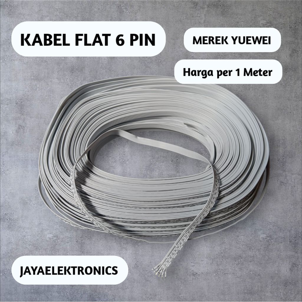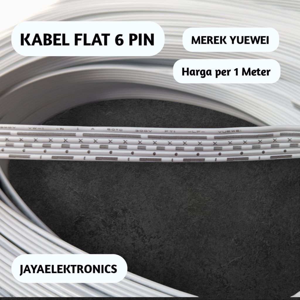 KABEL PITA 6 baris merk YUEWEI per 1 METER tembaga putih 7 x 0,11 mm - flat cable arduino,DIY,sensor