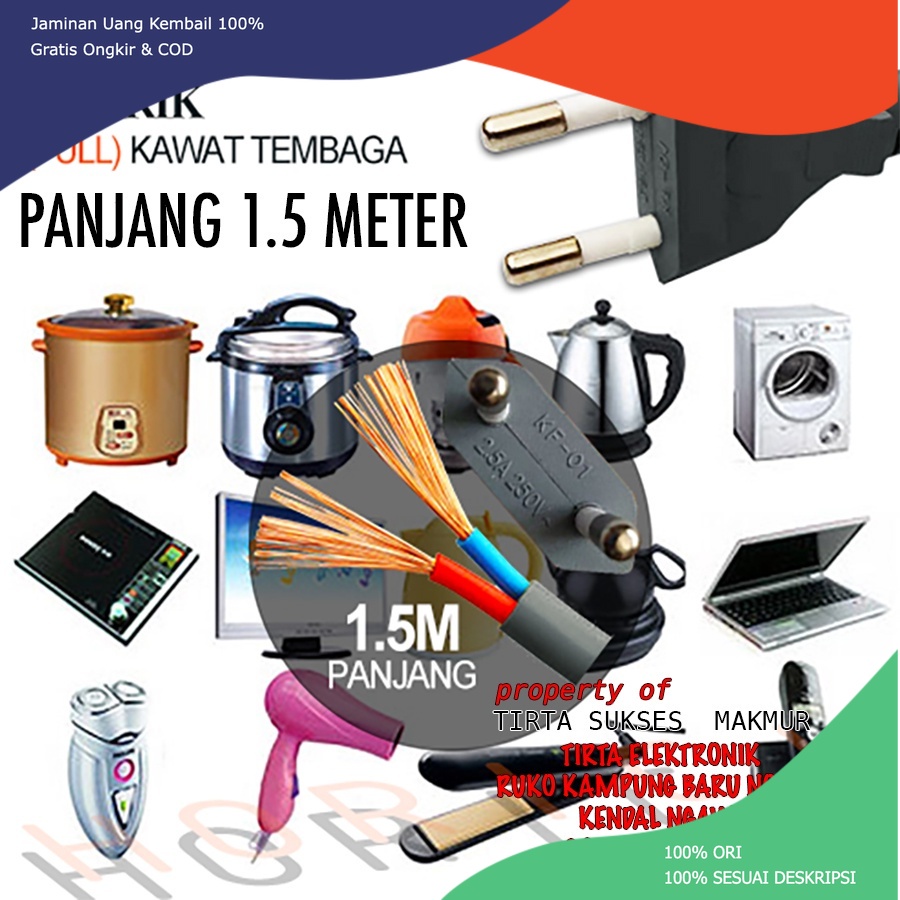 KABEL POWER / KABEL AC 220V / KABEL BUNTUNG / KABEL LISTRIK Kabel Sambungan + Colokan Listrik